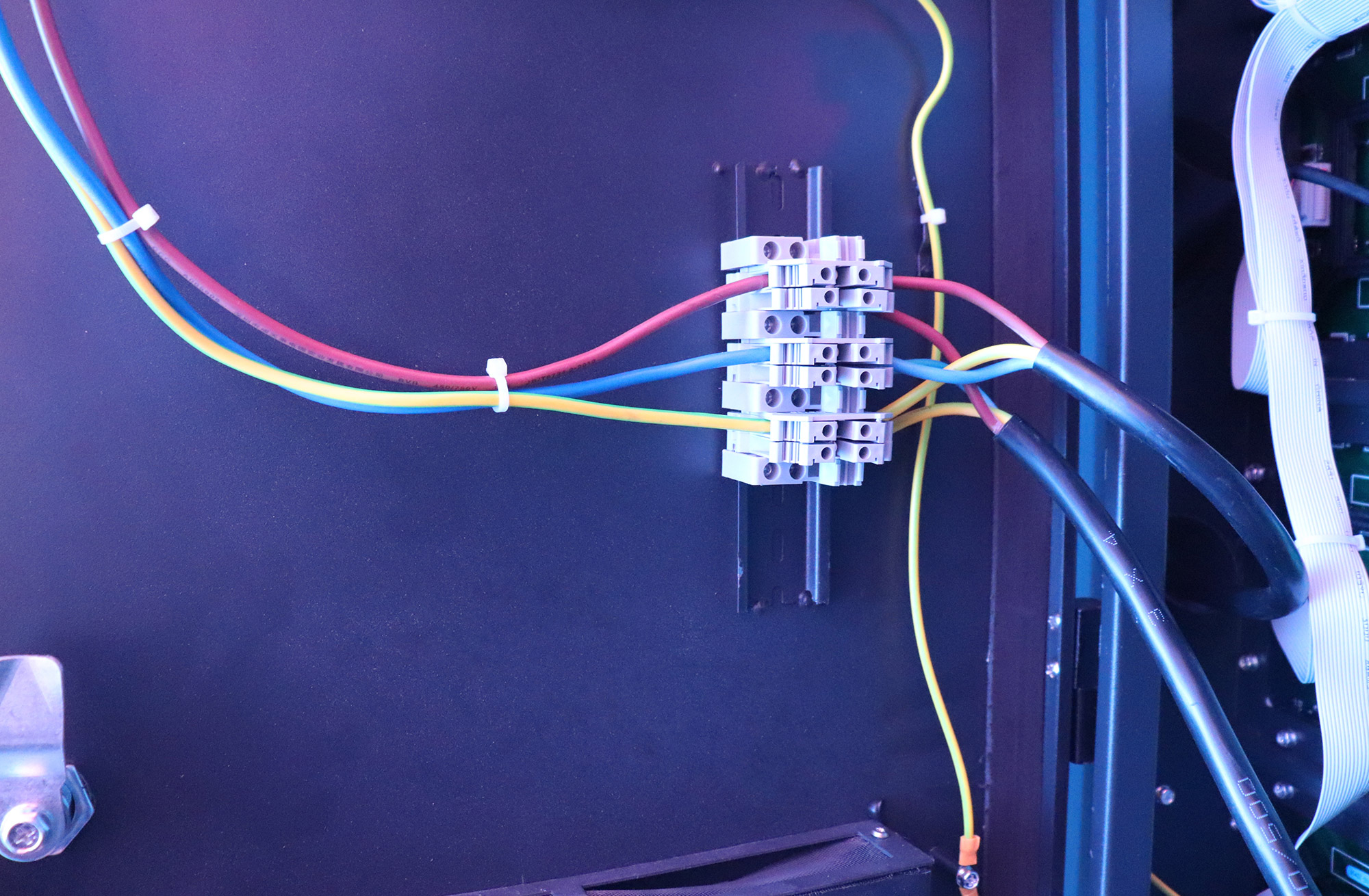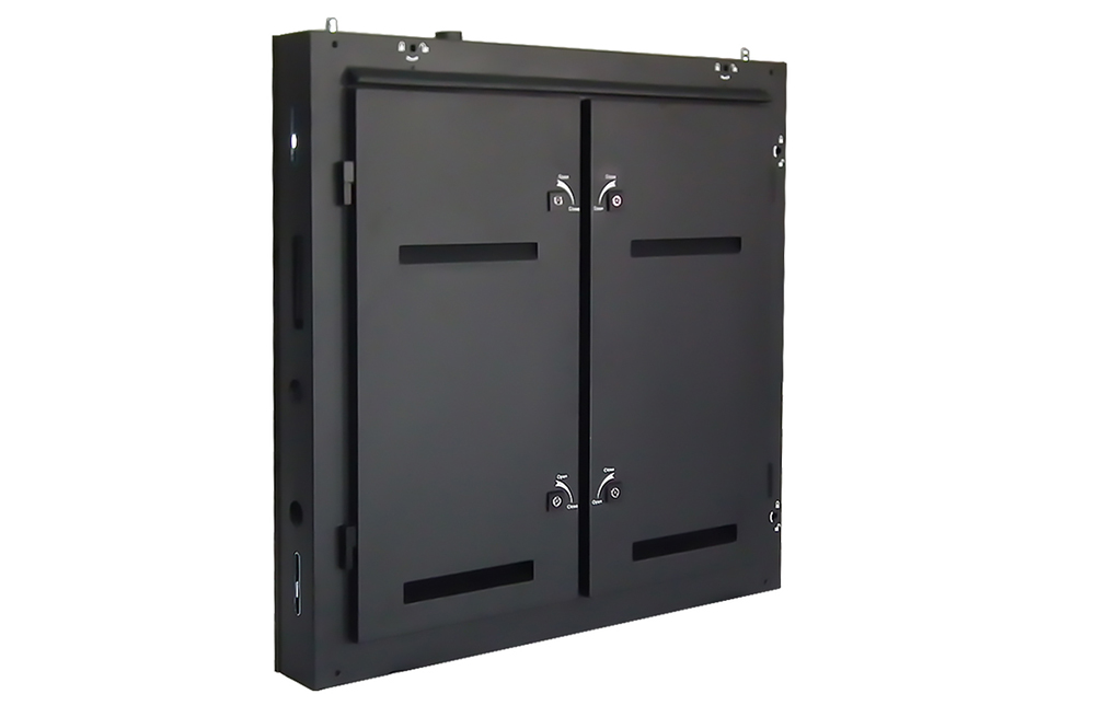 This LED display uses a solution where the cables are connected from the inside of the cabinet, avoiding the clutter of cables seen from the outside.