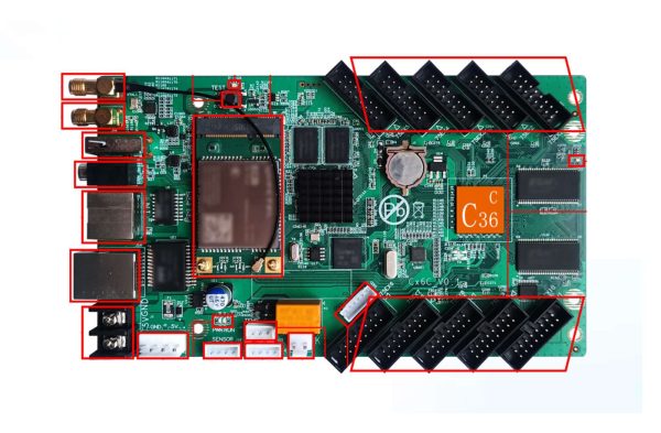HUIDU HD-C36 HD-C36C Full Color Asynchronous LED Screen Control Card Features: Control Range: 524,288 pixels. 4GB memory, support expending memory by U-disk. Support HD video hardware decoding, 60Hz…